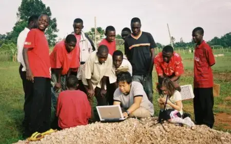 Before leaving Canada for Uganda, my partner Loc and my daughter Zoe, who was seven-years-old at the time spent a year collecting computers and money. We sold our car, rented out our house, and saved every penny so that we could spend some time here with the students, living with them in Kalagala. And so, makeshift plans made, my partner Loc, daughter Zoe, my father (Irv), as well as my two sisters (Kirsten and Rebecca), their partners (Wayne and Bryan), and my nephew (Justin), all packed our bags.