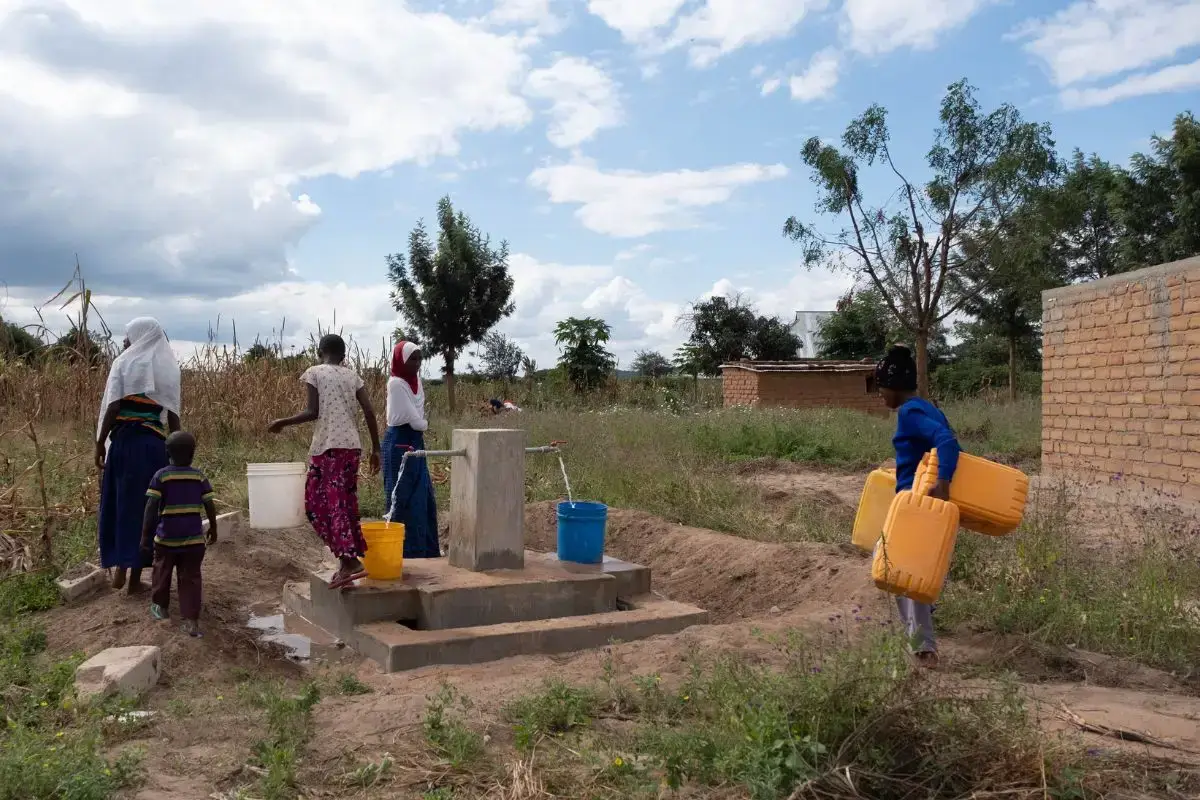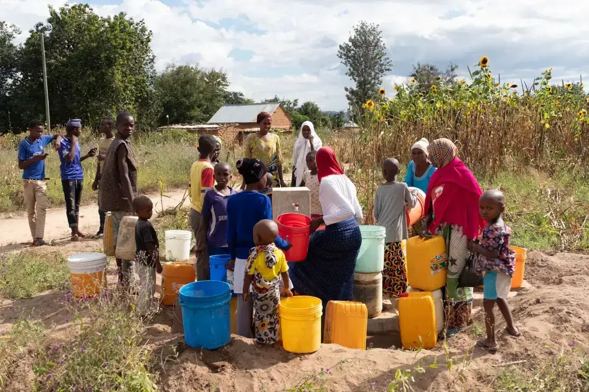 It took until the next day for the sim tanks to fill (quietly and without any fanfare), and then the water began flowing to the different distribution points throughout Iyoli. In the morning, we opened the taps and word spread throughout the village that they could come and fill their buckets.